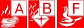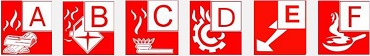 symbolen met letters A t/m F. Elke symbool staat voor een type brand. |